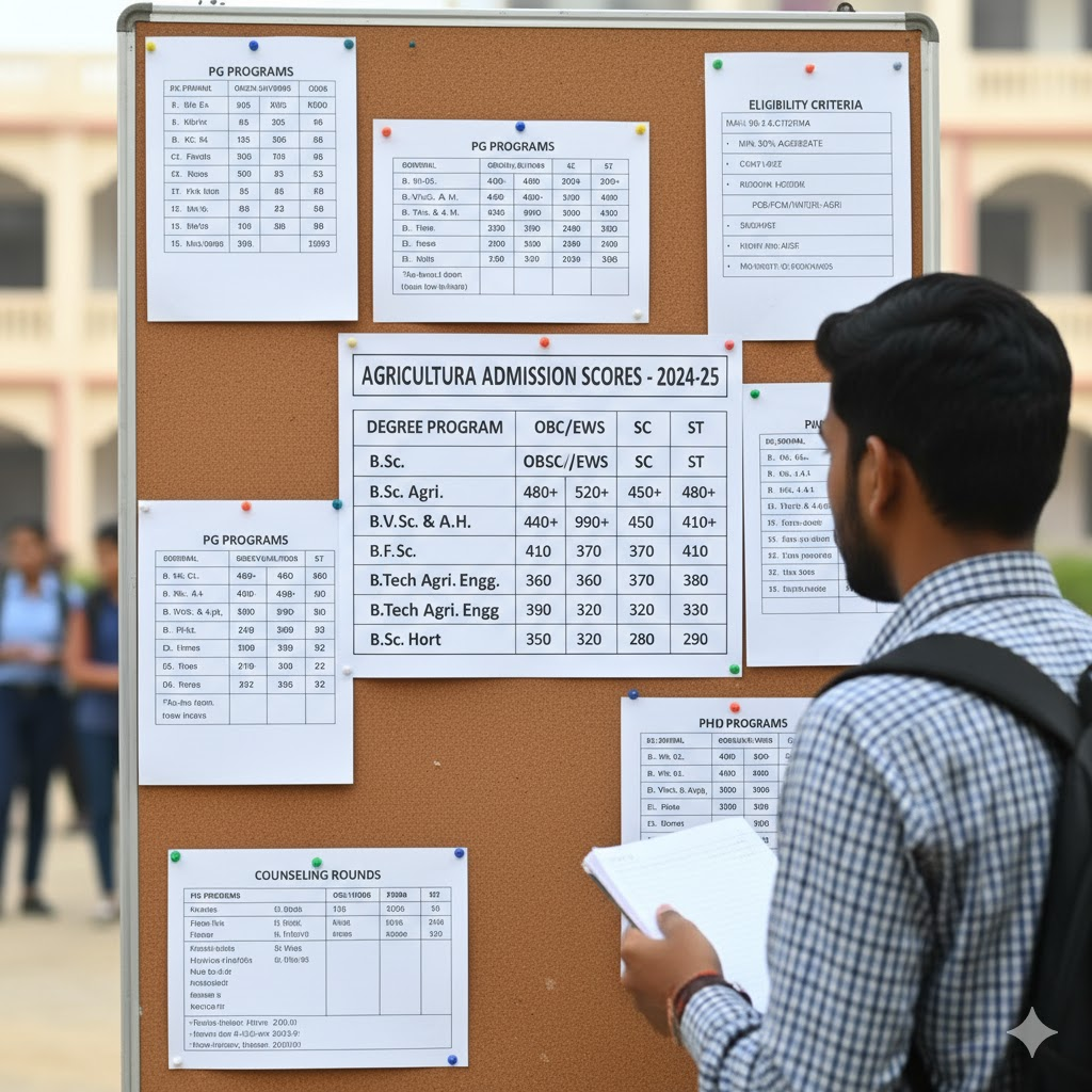 “Cut-off” here typically refers to the minimum marks, percentile or rank required in the entrance exam(s) or counselling process under ICAR for admission into various Agriculture & Allied Science programmes (UG, PG, PhD) via the AIEEA / CUET (ICAR) route.