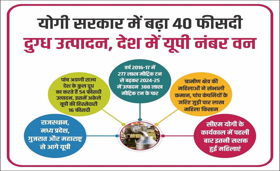 Lucknow: Uttar Pradesh has solidified its position as India’s leading milk-producing state, registering a nearly 40% increase in milk output under the leadership of Chief Minister Yogi Adityanath.